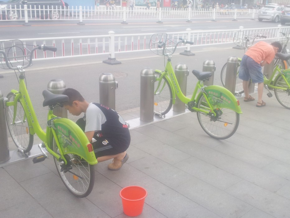 公園巷小學(xué)四一班學(xué)生利用暑假業(yè)余時(shí)間,去古彭廣場(chǎng)義務(wù)勞動(dòng)擦洗公共自行車,這種優(yōu)良的美德值得每一位市民學(xué)習(xí)。